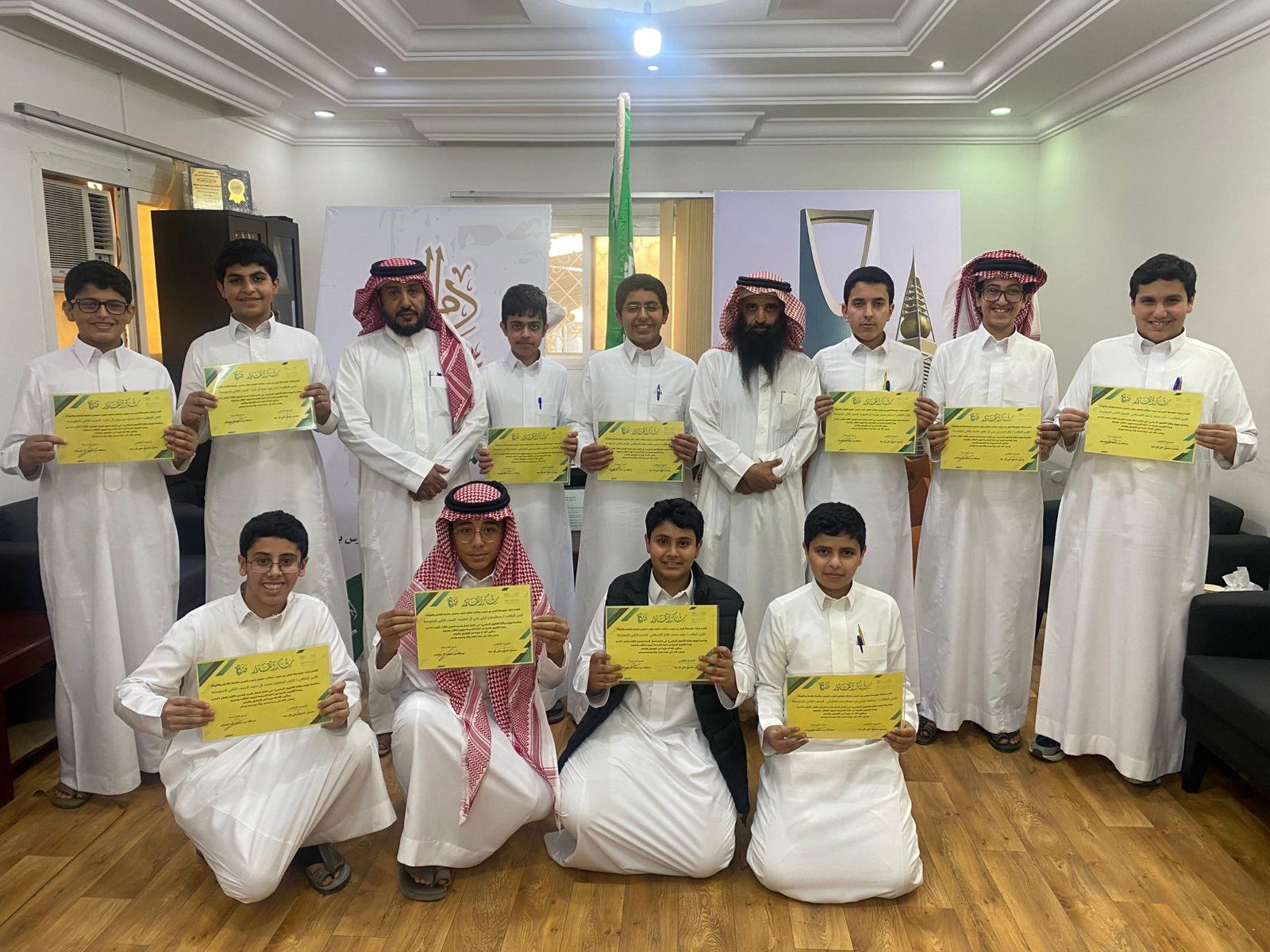 كرم سعادة مدير متوسطة اوس بن حبيب بتعليم جنوب خميس مشيط الأستاذ عبدالله بن سعيد آل خرصان الشهراني الطلاب الفائزين بجائزة التفوق الدراسي للفصل الدراسي الثالث في اختبارات منتصف الفصل يوم الخميس ٢٣ ذي الحجة عام ١٤٤٦ للهجرة في الصف الأول المتوسط والثاني المتوسط بلغ عدد الطلاب الفائزين بالجائزة (٣٢ طالب ) حيث تم منحهم شهادات شكر وتقدير من إدارة المدرسة قدمها مدير المدرسة الاستاذ عبدالله بن سعيد آل خرصان الشهراني حضر برنامج التكريم الاستاذ تركي عبدالرحمن العلياني والموجه الطلابي بالمدرسة الأستاذ معدي حسين على ال حيه المشرف العام على البرنامج وقدم آل خرصان التهاني والتبريكات للطلاب الفائزين بالجائزة وأولياء أمورهم من الآباء والامهات يأتي هذا البرنامج من ضمن برامج التوجيه الطلابي بالمدرسة صحيفة أحوال الإلكترونية تقدم أصدق التهاني والتبريكات للطلاب الفائزين بالجائزة ونسأل الله تعالى للجميع التوفيق والسداد والنجاح