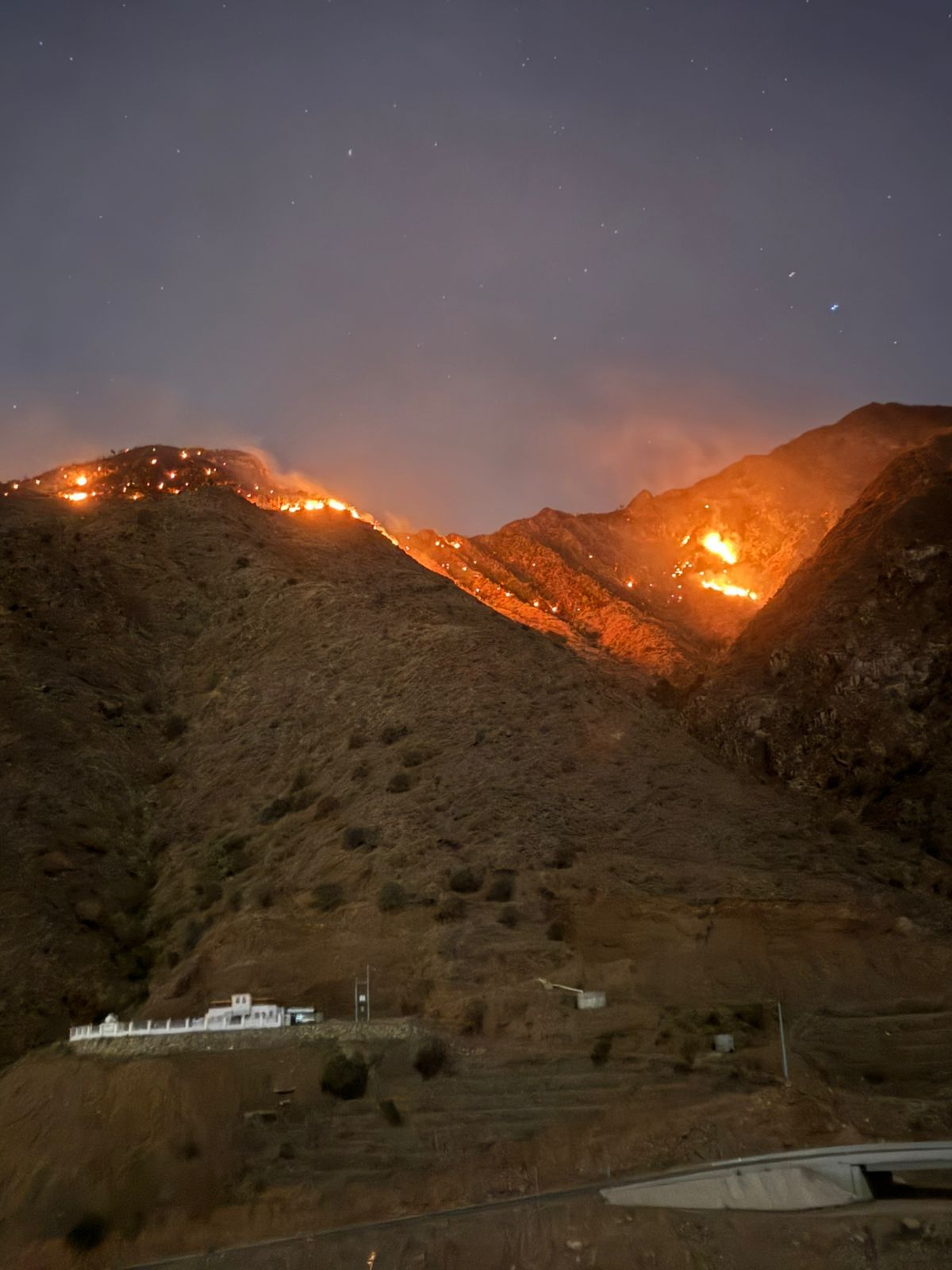 حتى الآن، لا تزال جهود إطفاء الحريق محدودة وتعتمد بشكل أساسي على جهود موطنين وشباب العزين بمركز الجبل الاسود،
