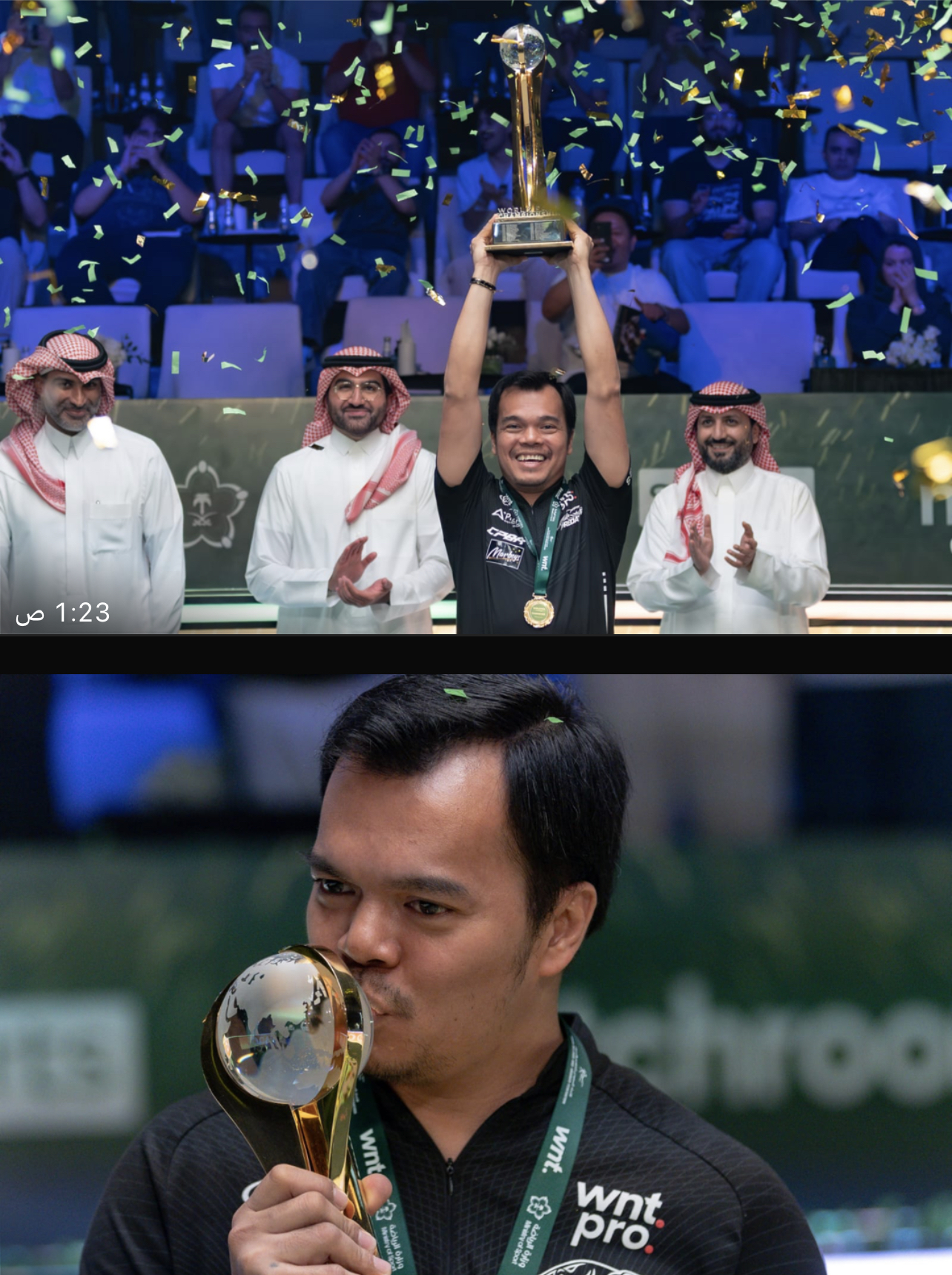 تَوّج معالي نائب وزير الرياضة، الأستاذ بدر بن عبدالرحمن القاضي، اللاعب الفلبيني كارلو بيادو بطلاً لبطولة العالم للبلياردو 2025، التي اختتمت منافساتها على الصالة الخضراء بمدينة جدة، بعد ستة أيام من المنافسات المثيرة، بمشاركة 128 لاعبًا من نخبة نجوم اللعبة، يمثلون أكثر من 40 دولة حول العالم.