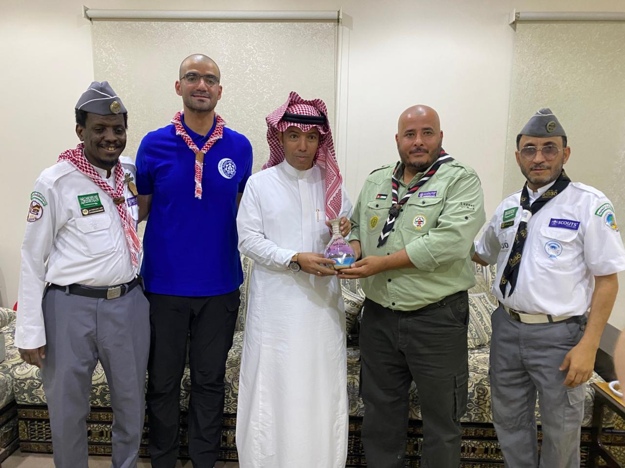 مجموعة القمر الكشفية من منطقة العقبة بالمملكة الاردنية تكرم التربوي سعد فهاد اللحياني، عضو مجلس أصدقاء فريق كشافة شباب مكة المكرمة بجمعية مراكز الأحياء.