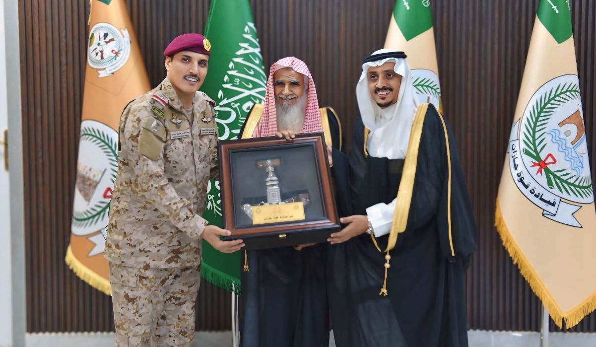 وقدم المستشار الشرعي للرئاسة بفرع الر ئاسة العامة للبحوث العلمية والإفتاء في منطقةًجازان درعاً تكريميا من سماحة مفتي عام المملكة حفظه الله لسعادة قائد قوة جازان ثم ألقى فضيلة المستشار الشرعي كلمة توعوية لأفراد القوات المساندة لعاصفة الحزم ، وأكد فضيلته فيها على فضل الجهاد في سبيل الله وما أعده الله للشهداء من أجر عظيم ومرتبة عالية في الجنة، مبيّنًا أن ذلك لا يتحقق إلا بالتمسك الصادق بالعقيدة والتوحيد الخالص، وتطهير القلوب من الأهواء والشبهات، مع الإخلاص في القول والعمل.