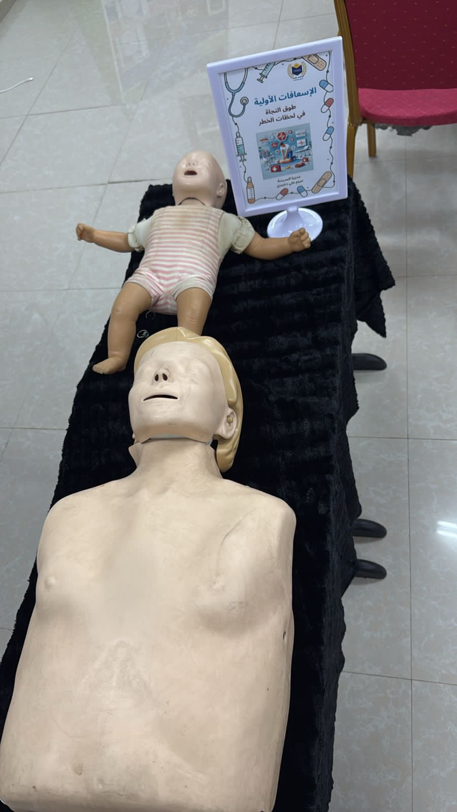 نفذت لجنة الأمن والسلامة والطوارئ ولجنة الصحة المدرسية ولجنة صحة الأم والطفل لمدينة صامطة الصحية وبالتعاون مع هيئة الهلال الأحمر السعودي بصامطة ومستشفى صامطة العام دورة تدريبية في الاسعافات الأولية للكادر التعليمي واولياء الامور من الأمهات بمدرسة طيبة الأهلية بصامطة