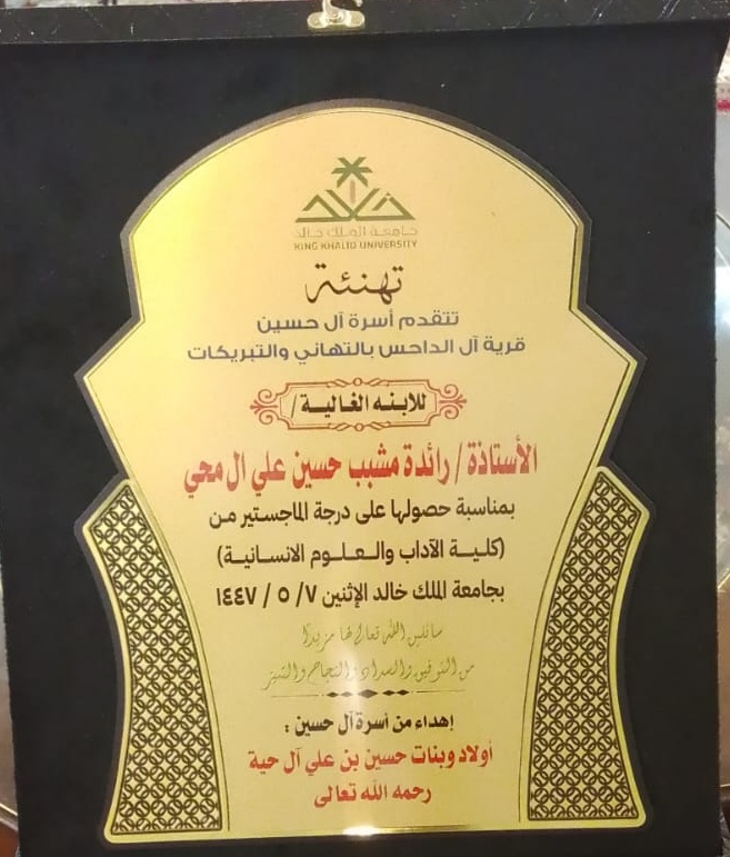 آل محي تحصل على درجة الماجستير من جامعة الملك خالد