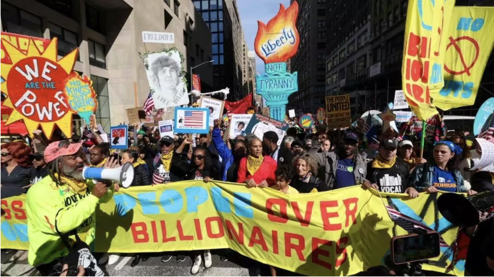 وقال الرئيس ترامب أيضاً في تعليق مقتضب على الاحتجاجات من داخل منتجعه في مارالاغو في ولاية فلوريدا قائلاً: “إنهم يصورونني كملك.. لكن كل هؤلاء مجرد مثيري فوضى يقودهم اليسار المتطرف”، وفقاً لم تم نقله عنه.