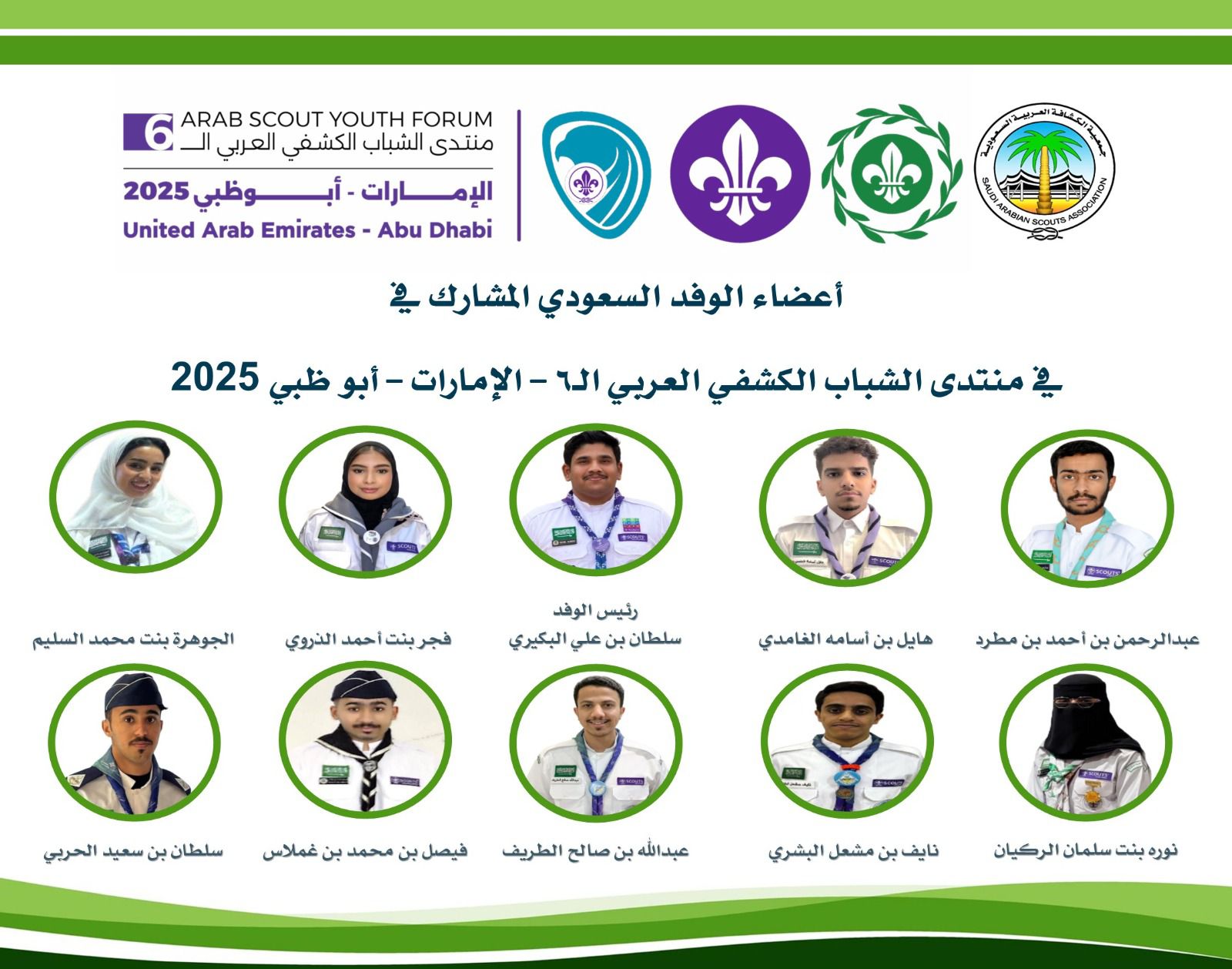 تشارك جمعية الكشافة العربية السعودية في المنتدى الكشفي العربي السادس للشباب، الذي يُعقد خلال الفترة من 9 إلى 14 نوفمبر 2025م في مركز ياس الدولي للمؤتمرات بجزيرة ياس في أبوظبي – دولة الإمارات العربية المتحدة، بمشاركة الوفود الشبابية من الجمعيات الكشفية الوطنية الأعضاء في الإقليم الكشفي العربي.