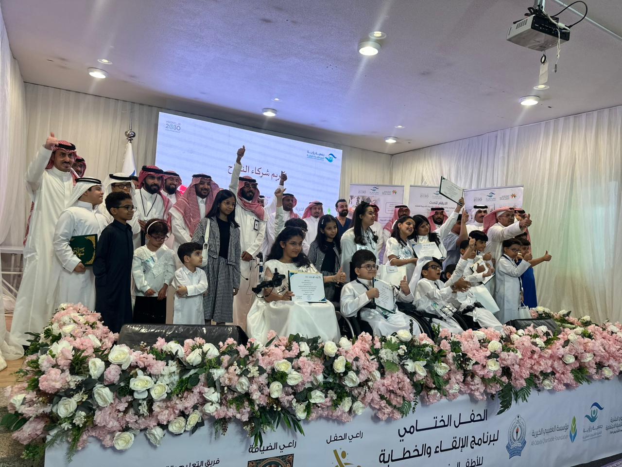 في مبادرة تُعدّ الأولى من نوعها ضمن أنشطة وبرامج وفعاليات ودورات جمعية رؤية لتنمية القدرات البشرية اختتم البرنامج التدريبي المتميز «فن الإلقاء الخطابة للأطفال ذوي الإعاقة » بشراكة مجتمعية مع فريق ( التعليم بالترفيه ) وبدعم من مؤسسة إبراهيم العضيبي الخيرية وذلك على مسرح شريك النجاح معهد العاصمة النموذجي – القسم الابتدائي – .