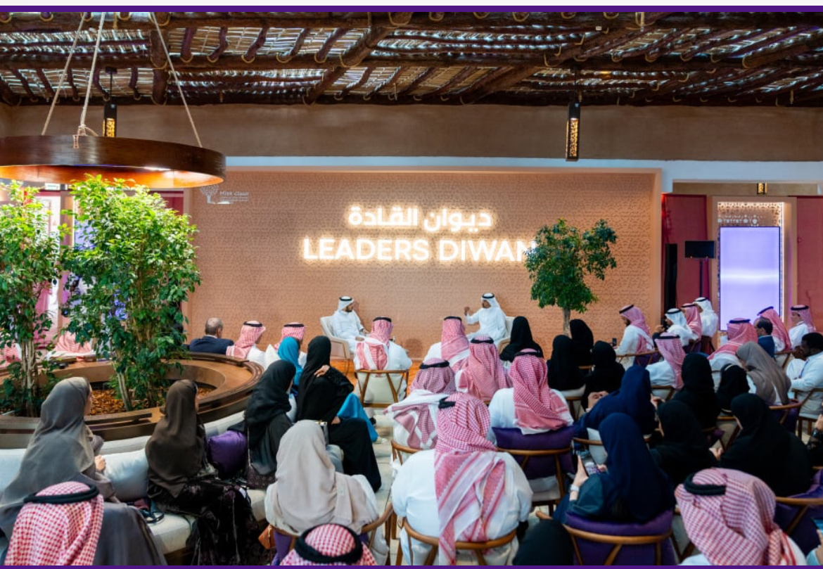 ولقاء القادة وهو عبارة عن مساحات تفاعلية والتي يقام فيها ومن خلالها حوارات ودية بأسلوب تلفزيوني تربط الشباب بالقادة العالميين