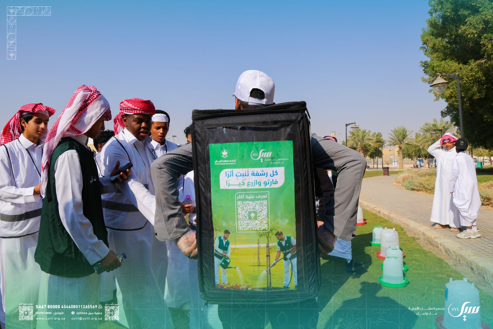 وجاءت المبادرة لتعزيز ثقافة العناية بالنباتات وريّها بطرق مستدامة، حيث عملت سيل على تنظيم عملية سقيا 800 شتلة بعد غرسها داخل حديقة عكاظ، باستخدام 384 لترًا من المياه، إلى جانب توزيع 8,800 عبوة مياه على المتطوعين بهدف تعزيز مفهوم الماء كأحد عناصر الحياة الأساسية.