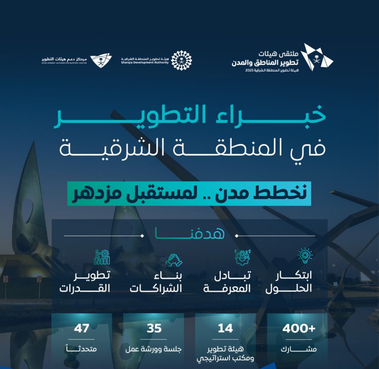 وقد أوضح د. طلال المغلوث الرئيس التنفيذي لهيئة تطوير المنطقة الشرقية أنّ الملتقى يمثل منصة وطنية لتبادل الخبرات وبناء تكامل فعّال بين الهيئات، نحو إستدامة مدن أكثر جودة وتنافسية.