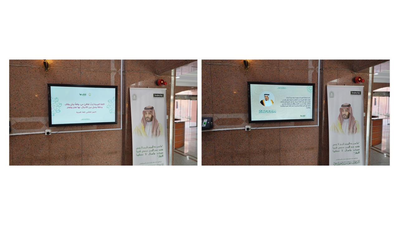 وذلك من خلال بث محتوى توعوي وعبارات لغوية عبر الشاشات الرقمية داخل أروقة الفرع، وتضمنت المشاركة إبراز مكانة اللغة العربية بوصفها لغة القرآن الكريم، ولسان العلم والأدب، وأحد أهم مقومات الهوية الثقافية والحضارية، إلى جانب عرض مضامين تعكس عمقها التاريخي ودورها في التواصل بين الشعوب والثقافات.