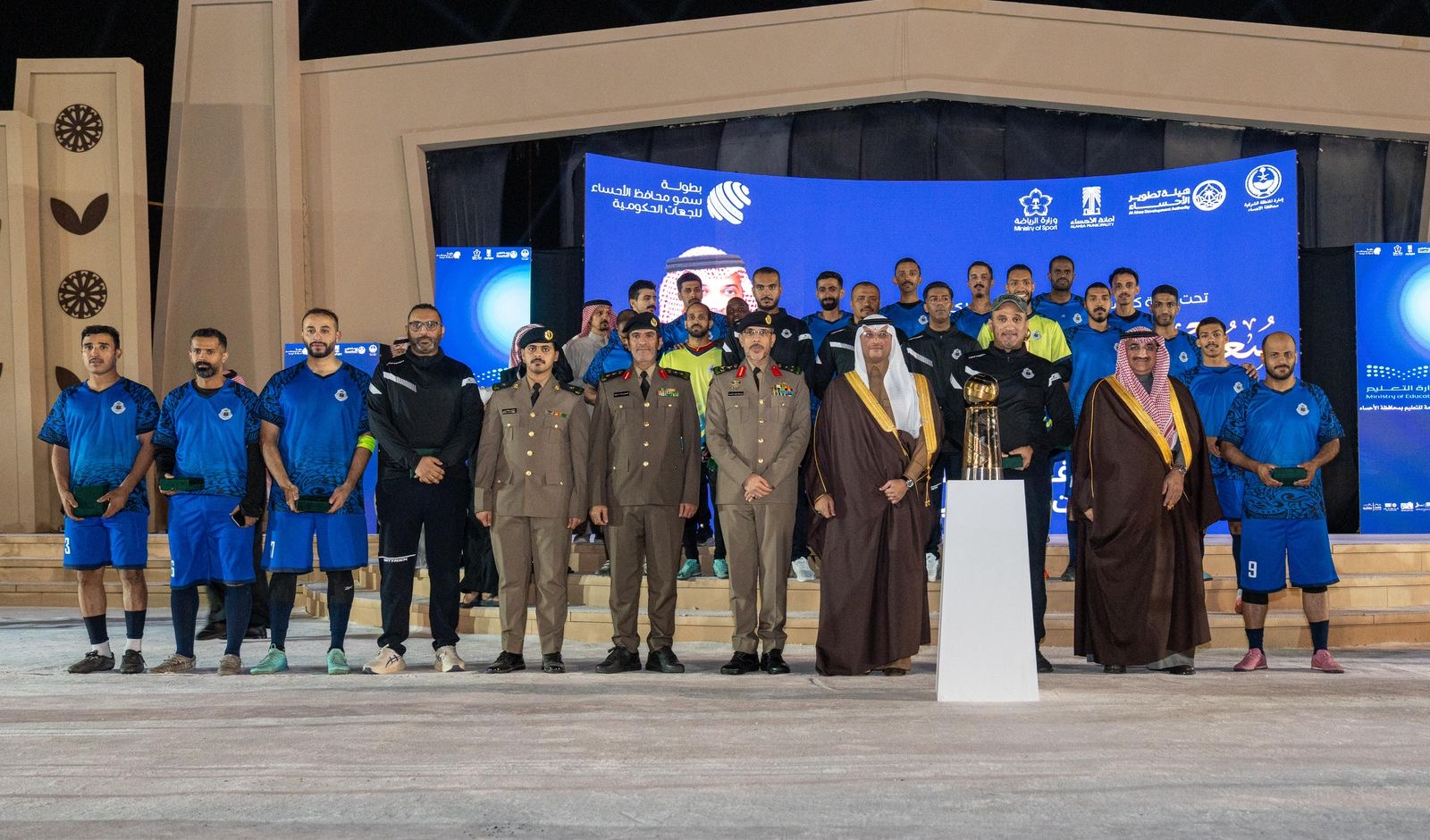 توّج صاحب السمو الملكي الأمير سعود بن طلال بن بدر محافظ الأحساء ، مساء يوم ” الاثنين ” ، فريق الإدارة العامة للتعليم بالأحساء بطلاً للموسم الثالث من بطولة سموّه للجهات الحكومية لكرة القدم، التي نظّمتها أمانة الأحساء بالشراكة مع هيئة تطوير الأحساء، وذلك على ملعب متنزه الملك عبدالله البيئي، بمشاركة 24 فريقًا يمثلون مختلف الجهات الحكومية بالمحافظة