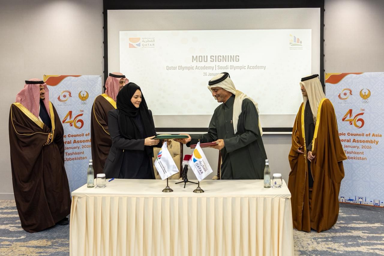وقّعت الأكاديمية الأولمبية السعودية مذكرة تعاون مشترك مع الأكاديمية الأولمبية القطرية، بحضور سمو الرئيس الأمير فهد بن جلوي، وذلك في مدينة طشقند بجمهورية أوزبكستان، على هامش أعمال الجمعية العمومية الـ46 للمجلس الأولمبي الآسيوي.