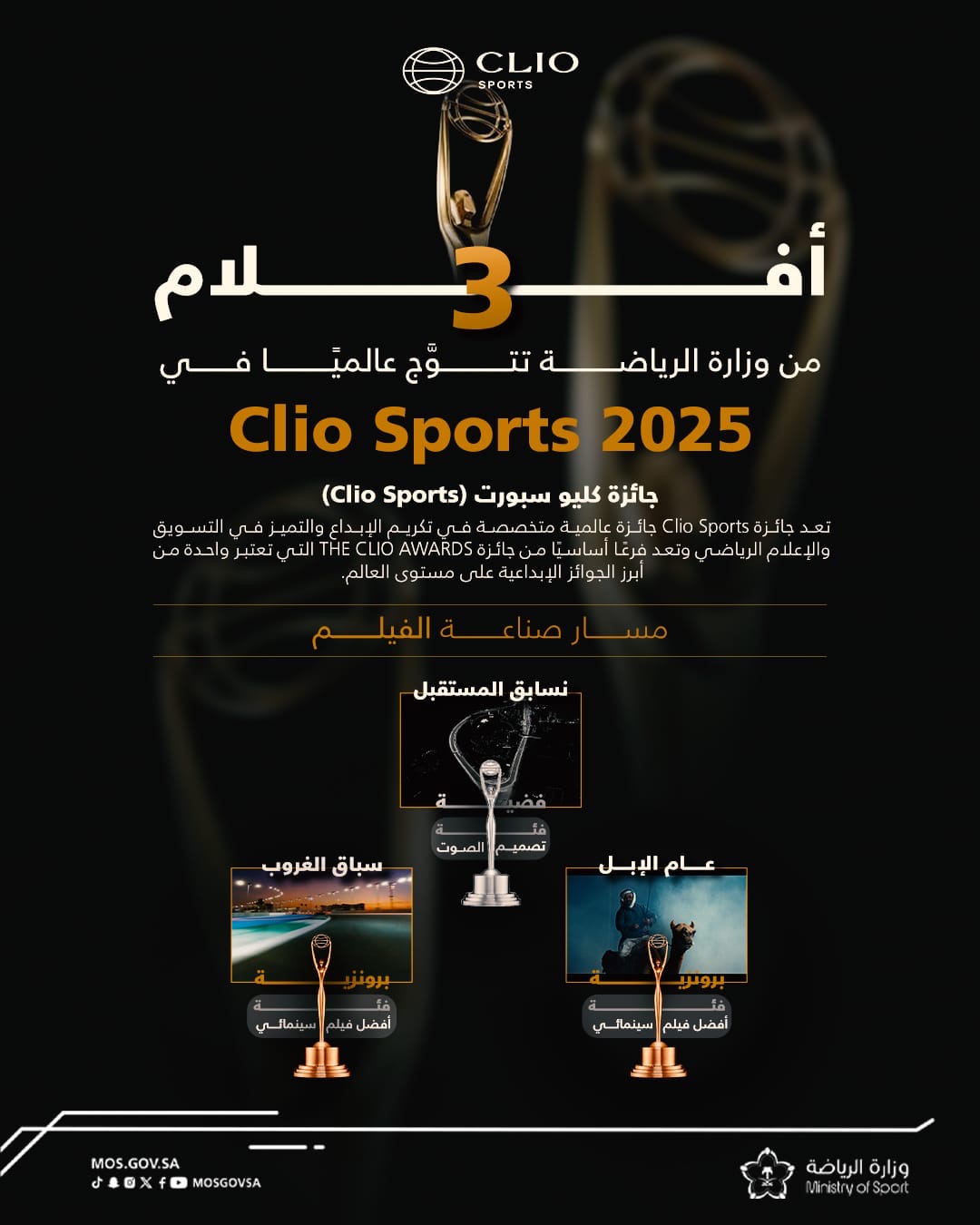 وزارة الرياضة تحقق 3 جوائز عالمية في Clio Sports المقدمة من جوائز The Clios الأمريكية