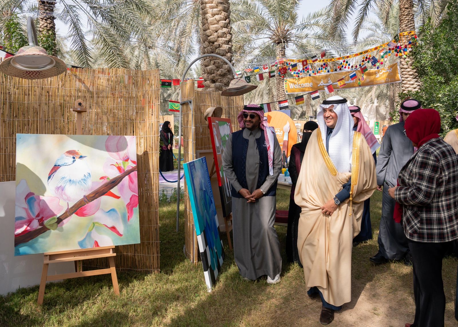 وتجوّل سموّه في الأركان الفنية المشاركة، واستمع إلى شرحٍ مفصل حول رؤية الملتقى، الذي يجمع هذا العام أكثر من (95) فنانًا وفنانة من (25) دولة حول العالم؛ ويهدف إلى إثراء الحراك الفني وتعزيز مكانة الأحساء بوصفه مركزًا عالميًا للإبداع