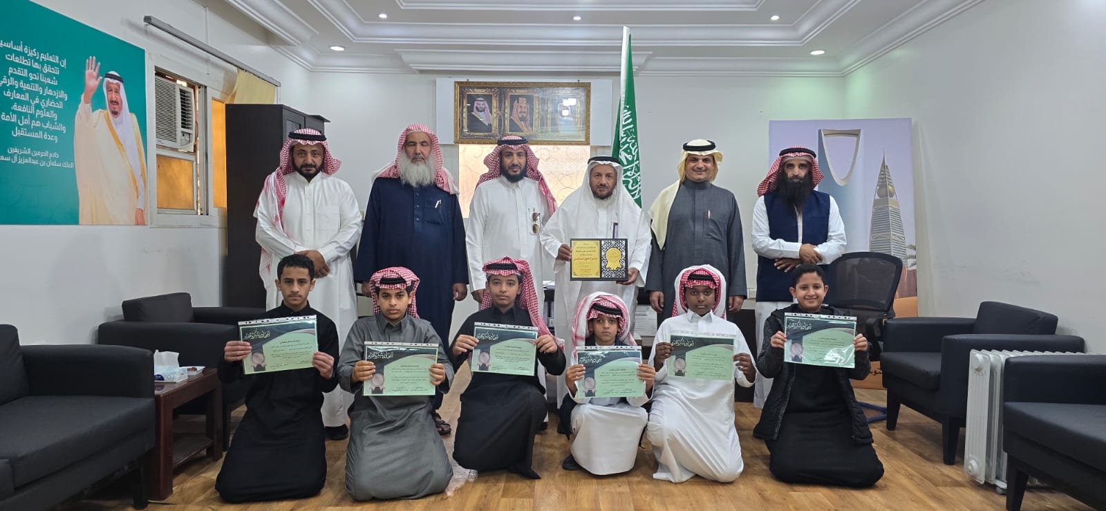 بحضور فريق الدعم بتعليم عسير سعادة الاستاذ محمد بن سعد بيشان وسعادة الدكتور محمد بن سعيد القرني كرمت إدارة متوسطة اوس بن حبيب الطلاب الفائزين بجائزة التفوق الدراسي بالمدرسة