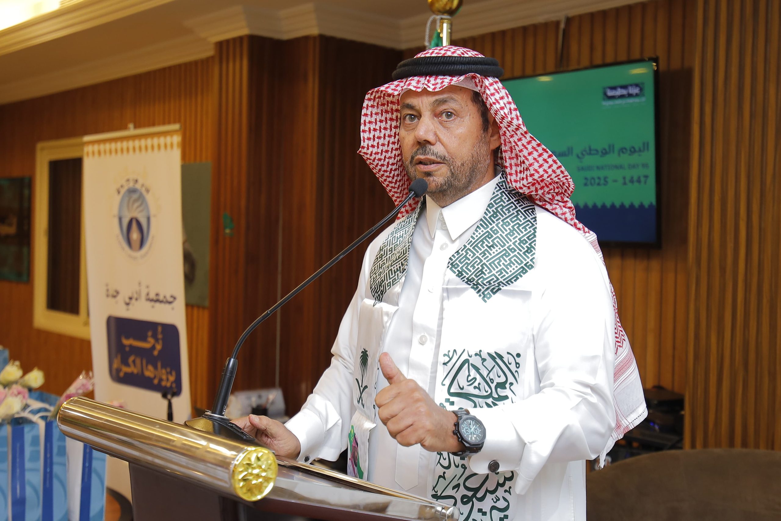 ​مشيرًا إلى أنَّ جمعيةَ أدبي جدة استجابت لمرحلة المواءمة بعد تحوُّلِها من مسمى النادي الأدبيِّ الثقافيِّ بجدة إلى جمعية أدبي جدة، مبينًا أنَّ النادي يواصلُ ويحافظُ على المناشط والفعالياتِ الثقافيةِ والفنيةِ من خلال برامجِه اليوميةِ، المشتملةِ على الندوات والمحاضرات، وورشِ العملِ، والمعارضِ الفنيةِ المتنوعة، في سعيٍ دؤوبٍ نحو تقديمِ عملاً مؤسسيًا منظمًا في ظلِّ رؤيةِ 2030.