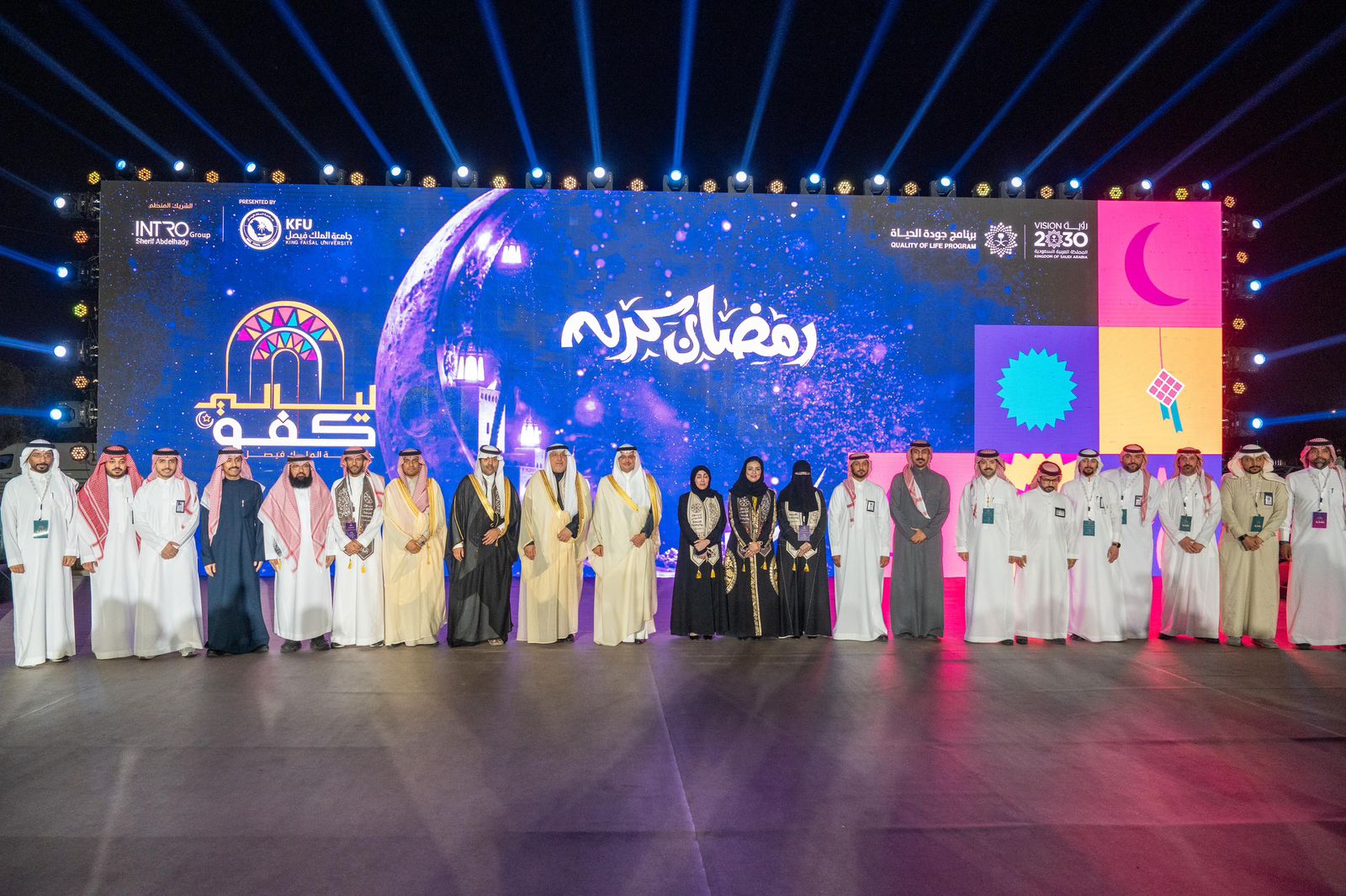 دشّن صاحب السمو الملكي الأمير سعود بن طلال بن بدر محافظ الأحساء , مساء أمس “, مهرجان “ليالي كفو 2026” في نسخته الثالثة، والمقام في متنزه الملك عبدالله البيئي، وتنظمه جامعة الملك فيصل, بالشراكة الإستراتيجية مع محافظة الأحساء, وهيئة تطوير الأحساء, وبرنامج جودة الحياة، وبالتعاون مع أمانة الأحساء, والمعهد الملكي للفنون التقليدية, وstc, إلى جانب عدد من الجهات الحكومية والخاصة وغير الربحية . وشاهد سموّه والحضور عرضًا مرئيًّا استعرض أهداف المهرجان وبرامجه ومبادراته التي تسهم في تعزيز الروابط المجتمعية، وترسيخ ثقافة التطوع والعمل المؤسسي المشترك، وإبراز إبداعات منسوبي الجامعة وطلبتها في مجالات متعددة .