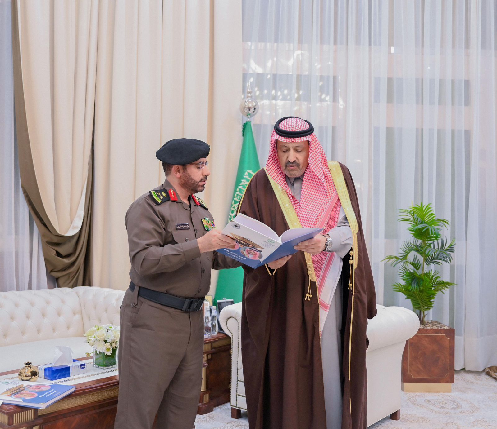 اطّلع صاحب السمو الملكي الأمير الدكتور حسام بن سعود بن عبدالعزيز أمير منطقة الباحة، في مكتب سموه بديوان الإمارة اليوم، على تقريرٍ عن جهود شرطة منطقة الباحة خلال شهر رمضان المبارك، وما تضمنه من أعمال أمنية وميدانية ، وذلك اثناء استقباله مدير شرطة المنطقة اللواء سالم بن هياف القرقاح.