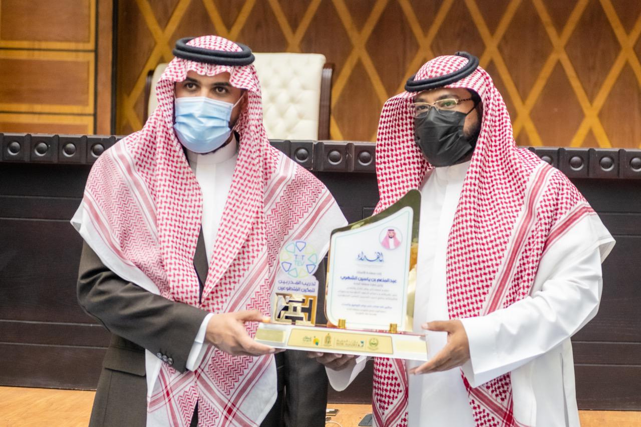 ثم تفضل سعادته بتكريم خريجي وخريجات البرنامج وشركاء النجاح من المؤسسات والجهات وكذلك تكريم المتطوعين على جهودهم مع الجمعية وتحقيق اهدافها الوطنية والمجتمعية .