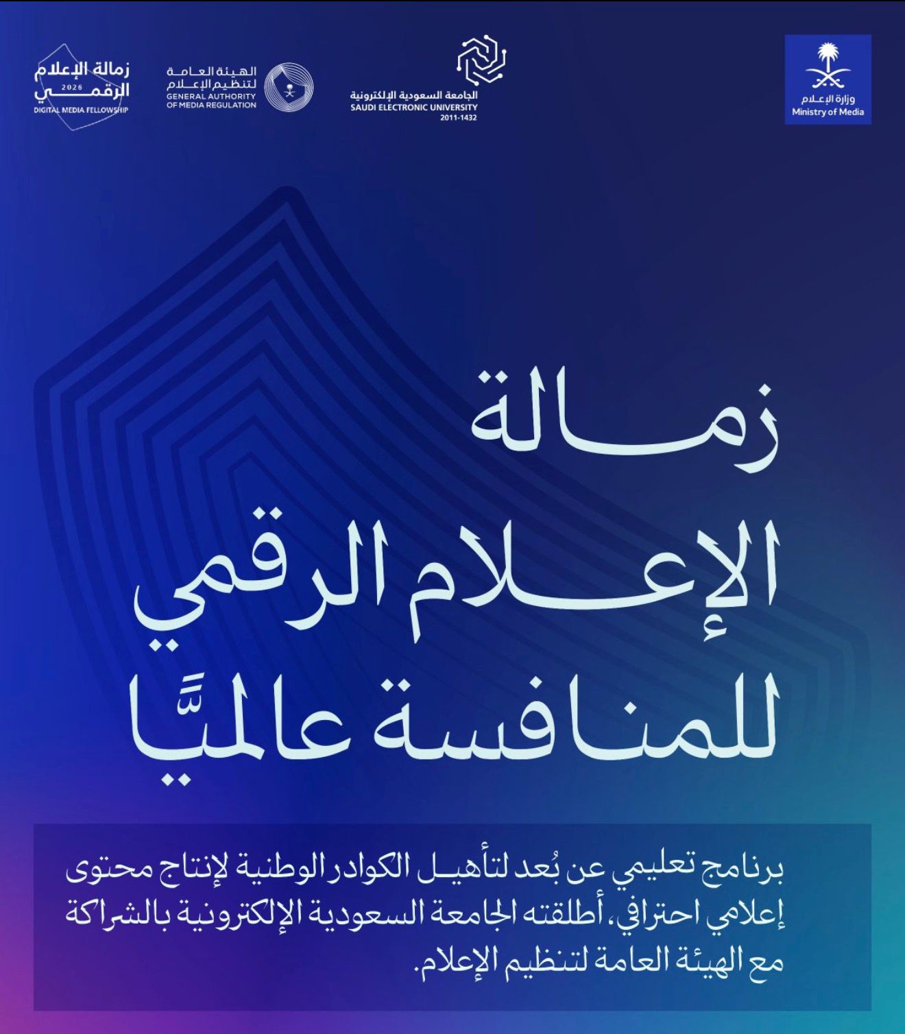 في خطوة تهدف الى تعزيز المحتوى الإعلامي ورفع كفاءة الكوادر البشرية الشابة، أعلنت الجامعة السعودية الإلكترونية وبالتعاون مع الهيئة العامة لتنظيم الإعلام، عن إطلاق برنامج زمالة الإعلام الرقمي، ويأتي هذا البرنامج كجسر يربط بين التأصيل الأكاديمي والخبرة المهنية لمواكبة التحولات المتسارعة في المشهد الإعلامي العالمي.
