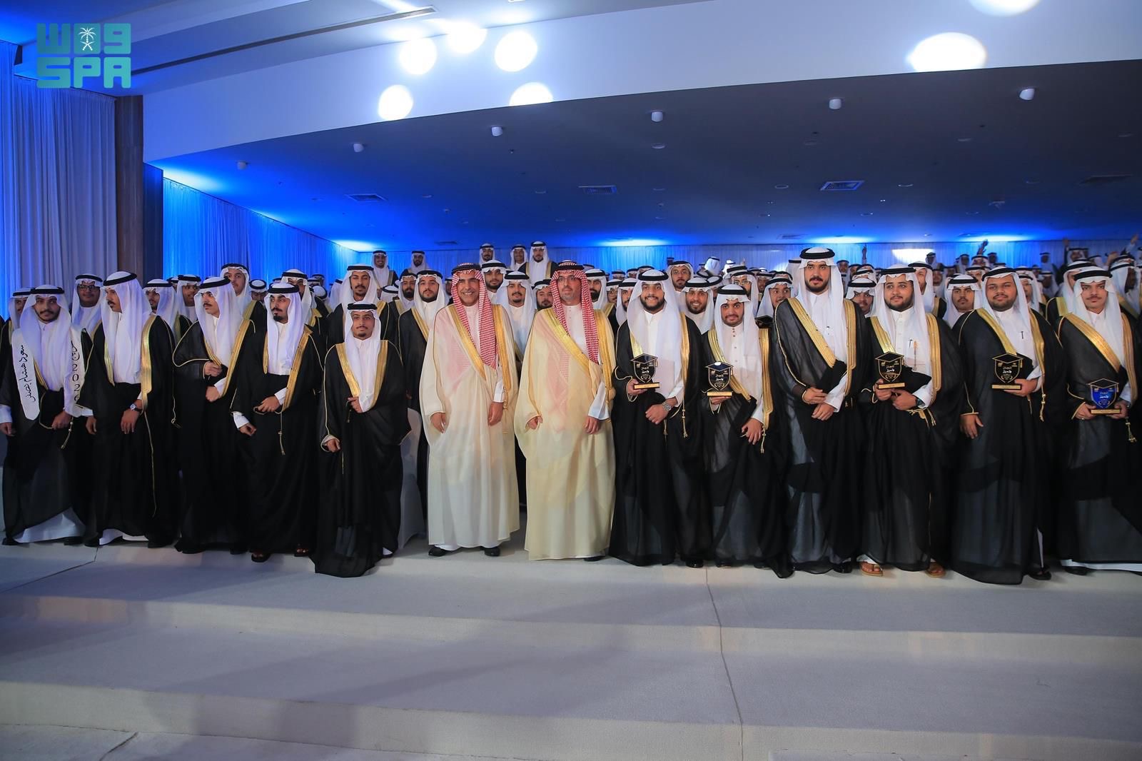 و بدء الحفل بمسيرة للخريجين جرى خلالها منحهم الدرجات العلمية، وأداء القسم لخريجي الكليات الصحية، عقبها شاهد سموه والحضور عرضًا مرئيًا عن مسيرة الجامعة وإنجازاتها، مسلطًا الضوء على قصة خريج وما حققته الجامعة من نجاحات محلية ودولية، خاصةً في مجالي اللوجستيات والذكاء الاصطناعي، تزامنًا مع عام الذكاء الاصطناعي، إضافة إلى كلمات ألقاها مجموعة من الطلاب نيابةً عن زملائهم.