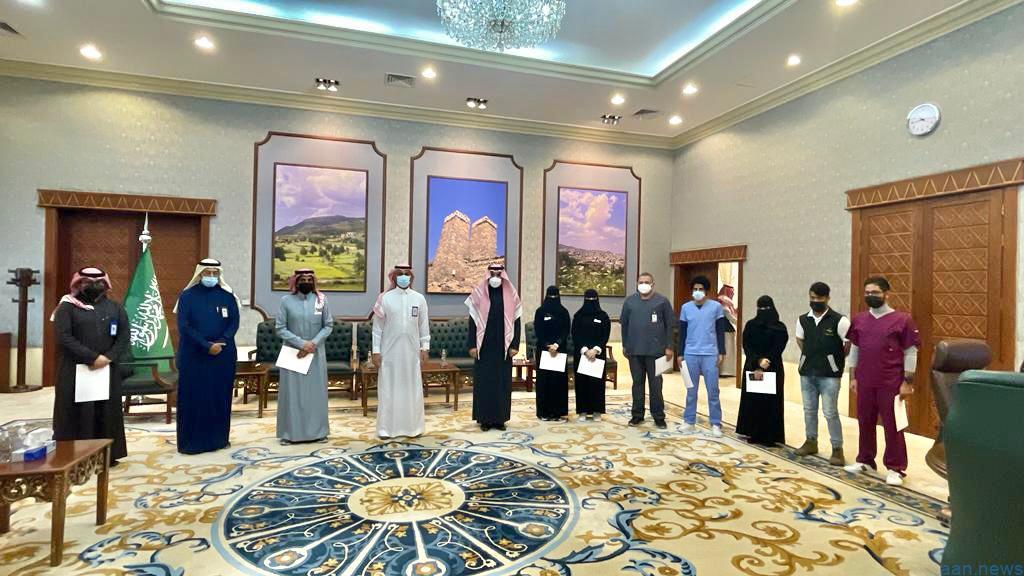 بتوجيهات صاحب السمو الملكي الامير الدكتور : حسام بن سعود بن عبدالعزيز امير منطقة الباحة ؛ كرم سعادة وكيل امارة منطقة الباحة الاستاذ : عبدالمنعم بن ياسين الشهري سعادة مساعد مدير الشؤون الصحية للصحة العامة الاستاذ محمد بن عبدالله الغامدي وفريق عمله بالصحة العامة تقديراً لجهودهم المتميزة وعملهم الدؤوب بعيادة تطمن لمكافحة فيروس كورونا المستجد وما قاموا به خلال الفترة الماضية .