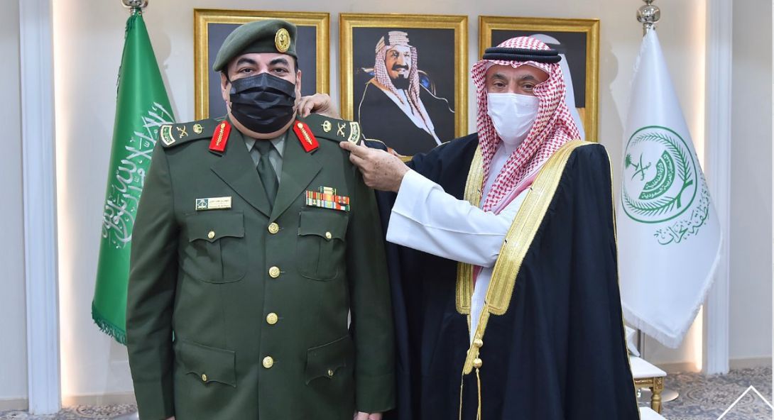 قلد أمير منطقة نجران صاحب السمو الأمير جلوي بن عبدالعزيز بمكتبه اليوم مدير الجوازات بالمنطقة اللواء سليمان بن محمد الخليل رتبته الجديدة بعد صدور المقام السامي الكريم بترقيته .
