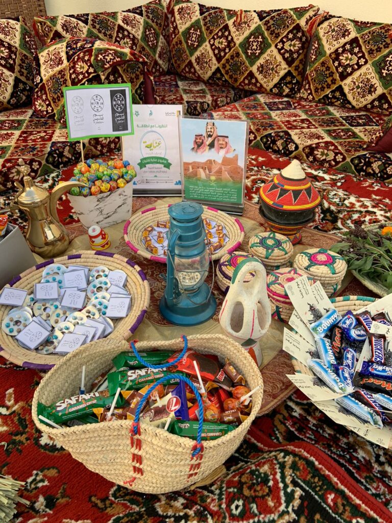 شاركت الجمعية الخيريه لرعايه الايتام بمنطقة نجران فرحة يوم التأسيس مع مستفيداتها الفتيات المرحلة المتوسطة برعاية برنامج عناية الى جانب تنفيذ بعض الانشطة الهادفه للفتيات ،وقد أحتوى البرنامج على منافسة لاجمل زي تراثي وايضا مسابقه أجمل ركن تراثي