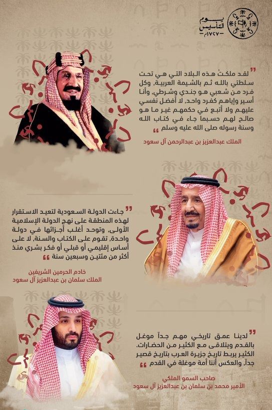 بمناسبه يوم التأسيس اغتنم هذه المناسبة الطيبة المباركة واقدم الشكر الجزيل بعد شكر الله عز وجل على مانحن فيه من خير كثيرلنا في هذه البلاد واشكر المولى على اسرة الخير اسرة ال سعود الكرام الطيبين ةالفضل على بلادنا منذ الجد الاول مانع المريدى من بنى حنيفه وتأسيس الدرعية ثم قيام الدولة على يد الامام محمد بن سعود وتبنى نهج دعوته الدينية المتوافقة مع الدين الواضح الصحيح على الوسطية منهج حياة، ثم توالت الدولة على ما مرت به صعودا ونزولا مع حروبهم من اعداء الدعوة من الداخل والخارج وقيام الدولة على المنهج الصحيح، ولكن الله نصرهم وكانت زهران من قبائل الحجاز مع الدعوة وكان احد فرسان الدولة السعودية الاولى الفارس الشجاع بخروش بن علاس احد ابناء زهران من قريه الحسن فتم فقاد معارك لمقاومة العازي محمد علي المدعوم من الدولة العثمانية وقتها، فكرمته الدولة السعودية الاولى ببناء قلعه تحمل اسمه “بخروش بن علاس” وهى شاهد الى يومنا هذا على مناصره زهران للدعوة السلفية، وتوالت دوله ال السعود على يد الامام تركى بن عبدالله الذى اسس الرياض عاصمه للحكم ثم اتى المؤسس الملك عبدالعزيز رحمه الله ورحم كل من حارب وجاهد من اجل هذه الدولة من قيامها الى يومنا هذا من رجال وطننا البواسل الذين يحاربون على حدود دولتنا بسمع وطاعة لنصرة الدين ولأسرة ال سعود التي قامت بشرع الله وتأخذ بكل اسباب العلم والتقدم والتطور في بناء هذه الدولة اعزها الله بدينه ثم بحكام كرام من اسره طيبه كريمة تحب الخير لهذه البلاد واهلها في ضل عهد خادم الحرمين الشريفين سلمان بن عبد العزيز وولى عهده الامير محمد بن سلمان صاحب متعهما الله بالصحة والسرور.