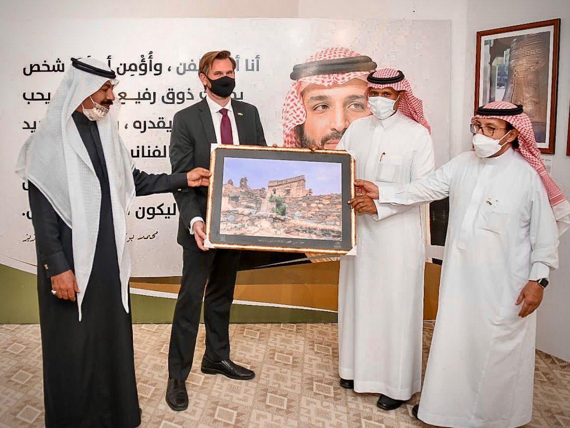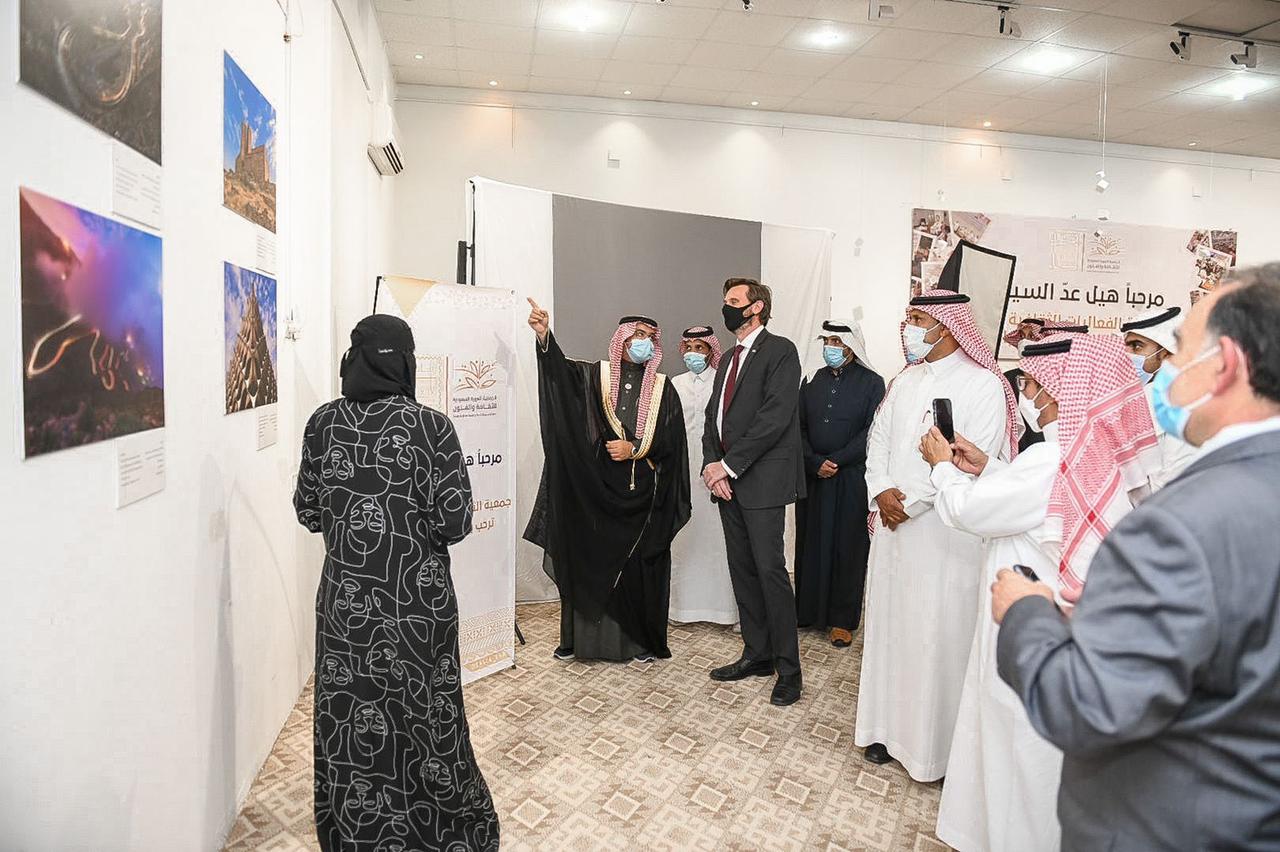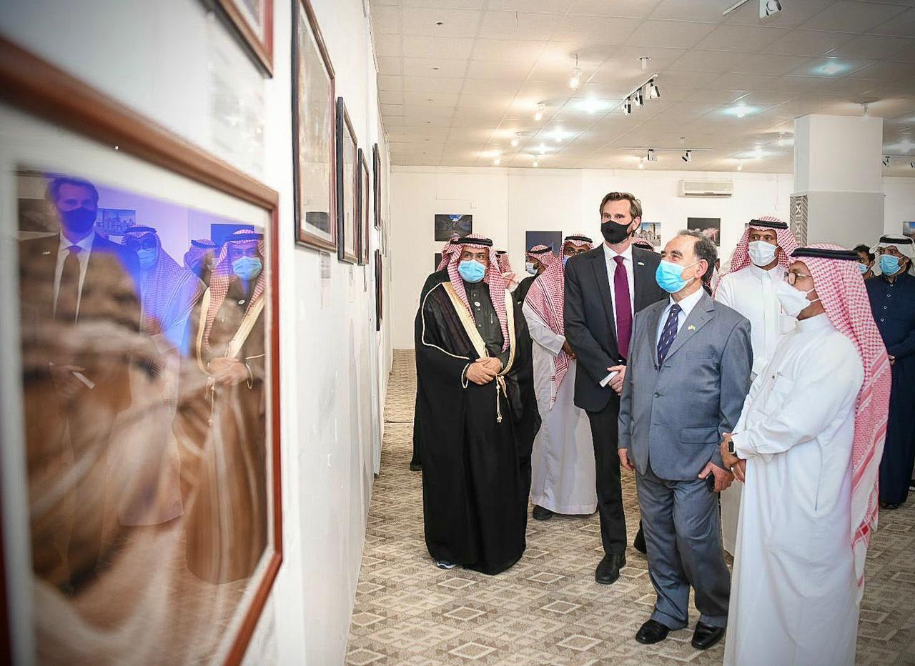 وقد تجول مدير جمعية الثقافة والفنون بالباحة الأستاذ علي بن خميس البيضاني بالضيوف على المعرض واستمعوا لشرح كامل عن الصور الموجودة ، ويضم المعرض 48 صورة تمثل الطبيعة والثقافة والحضارة في المملكة العربية السعودية والولايات المتحدة الامريكية ، حيث يُحاكي المعرض فكرة الصورة في إشارة إلى رسالة الفنون لمد جسور التواصل الثقافية والفنية بين المجتمعات والحضارات .