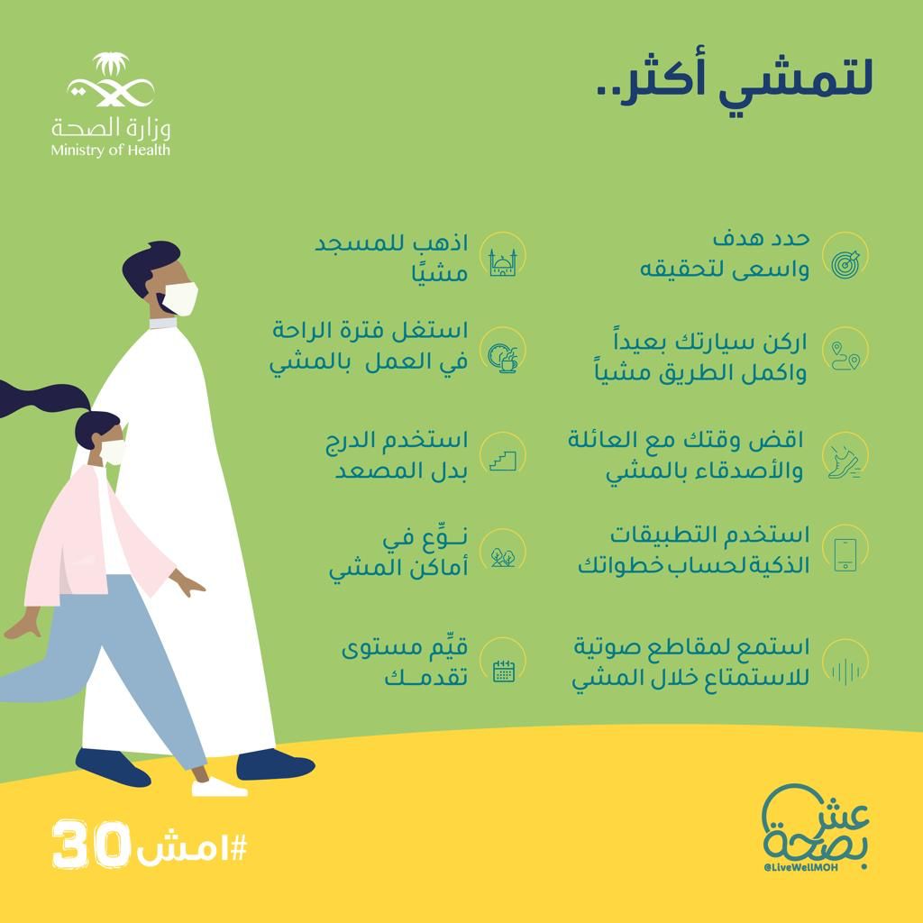 تطلق صحة جدة يوم غدٍ السبت الخامس من مارس وعند الرابعة عصراً بالواجهة البحرية فعالية رياضة المشي تحت شعار #اليوم_الوطني_للمشي ، تزامنًا مع الحملة التي أطلقتها وزارة الصحة في جميع أنحاء المملكة تحت شعار « امشِ 30 » .
