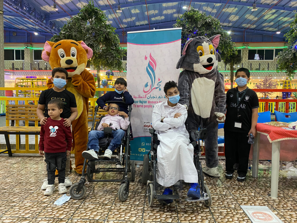 أوضح المتحدث الرسمي لجمعية نور نجران الأستاذة لجين الوادعي بأن الجمعية قامت بتنفيذ برامج ترفيهية للأطفال ذوي الإعاقة حيث تم توزيع 100 بطاقة الألعاب ترفيهية مقدمة من مجمع ريحانا تو مول على الأطفال وذلك لرسم البسمة عليهم وتحفيزهم، كما تم إنشاء ركن تعريفي للجمعية يوضح للزوار ماتقوم به الجمعية من برامج وخدمات مساندة لذوي الإعاقة على مدار العام