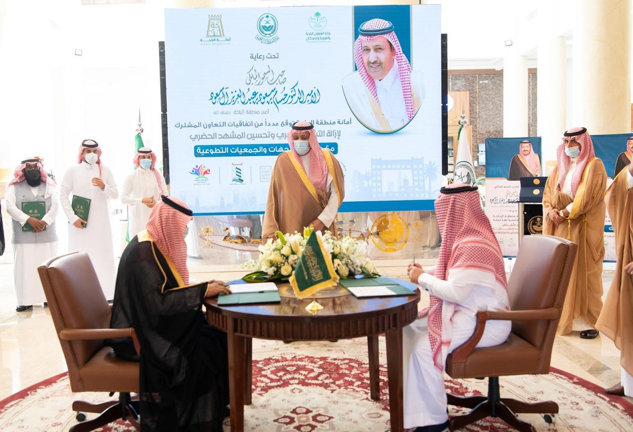 من جهة اخرى شهد سمو أمير منطقة الباحة توقيع عدد من مذكرات التعاون مع امانة الباحة في مجال معالجة التشوهات البصرية وتحسين المشهد الحضري والتي وقعتها امانة المنطقة مع أمانة المنطقة ومجلس شباب منطقة الباحة وجمعية ابواب للعمل التطوعي وفريق عطاء التطوعي ورابطة الباحة الخضراء وفرع جمعية الثقافة والفنون بالمنطقة .