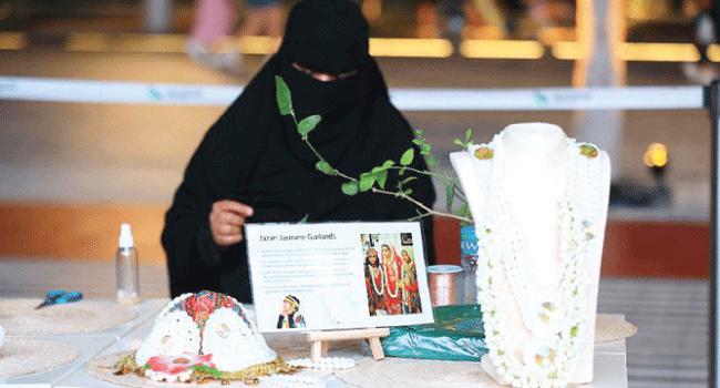 أبرز جناح المملكة المشارك في معرض «إكسبو 2020 دبي» طرق صناعة أطواق وعقود وأساور الورد، والروائح والنباتات العطرية المختلفة، من خلال فعالية « ياسمين جازان «، التي ركزت على أماكن نمو النباتات والزهور التي تستخدم زيوتها في تركيبات العطور والبخور.