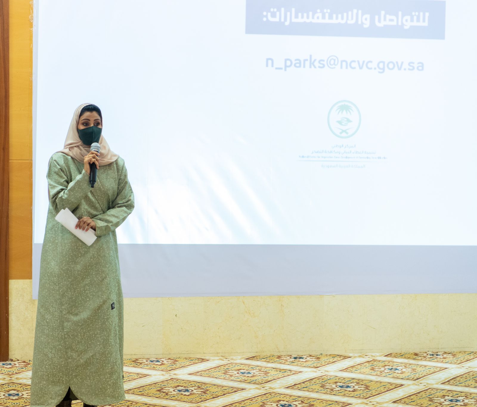 بعد ذلك القى الرئيس التنفيذي للمركز الوطني للغطاء النباتي ومكافحة التصحر الدكتور خالد بن عبدالله العبدالقادر كلمة أكد خلالها أن الاستثمار في المتنزهات الوطنية لها أهداف كبيرة جداً منها خدمة مستهدفات المملكة الخضراء وتنمية الغطاء النباتي والمحافظة عليه, والمساهمة في جودة الحياة بالمنطقة ، بالإضافة توفير فرص وظيفية .