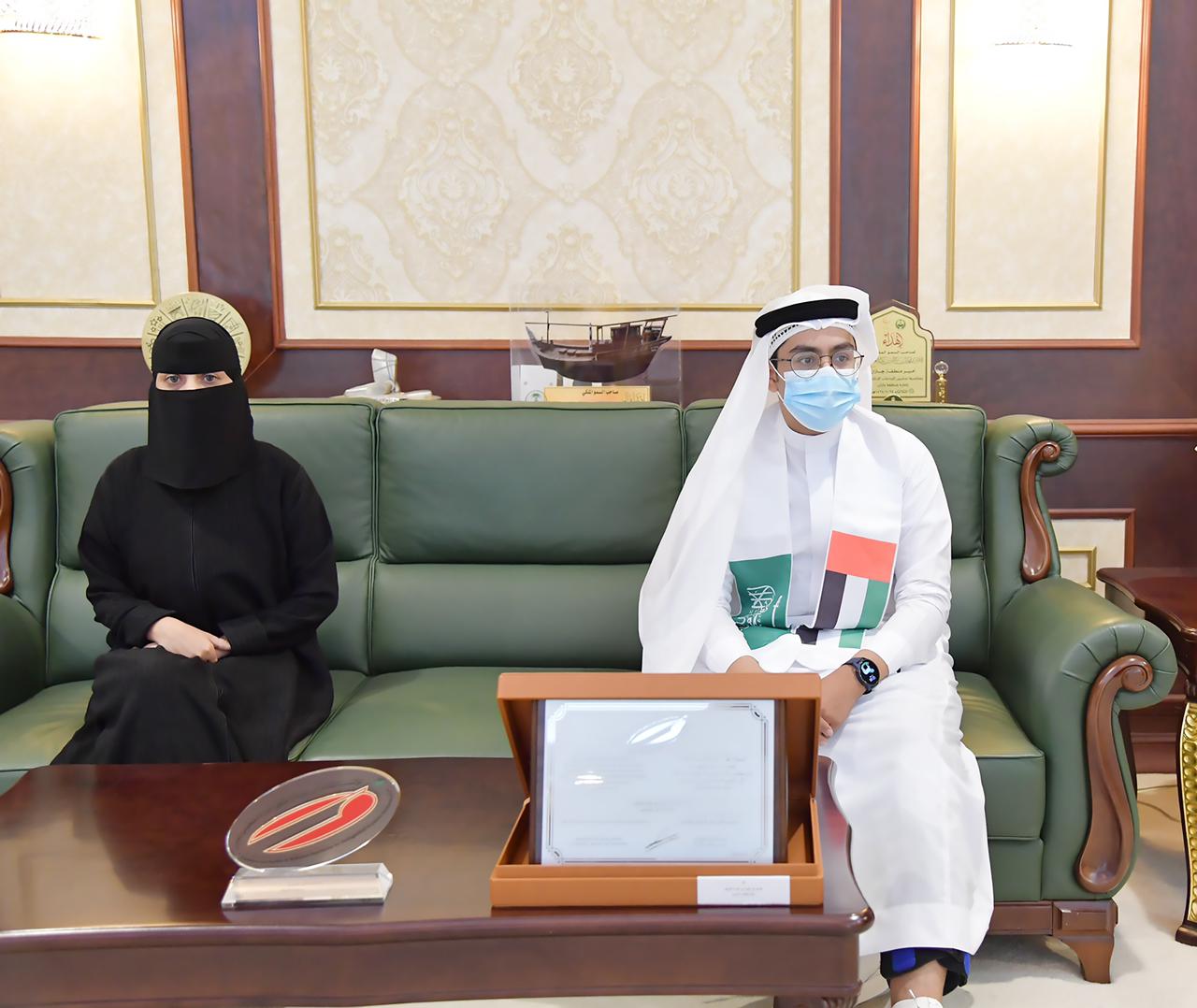 كرم صاحب السمو الملكي الأمير محمد بن ناصر بن عبدالعزيز أمير منطقة جازان ، بمكتبه في الإمارة بعد ظهر اليوم، الطالب عمرو بن وليد البراق من مدارس جازان الأهلية بأبوعريش بالإدارة العامة للتعليم بمنطقة جازان؛ بمناسبة فوزه بجائزة الشيخ حمدان بن راشد آل مكتوم للأداء التعليمي المتميّز على مستوى الخليج العربي في فرع الطالب المتميز ضمن الدورة الـ 24 للجائزة.