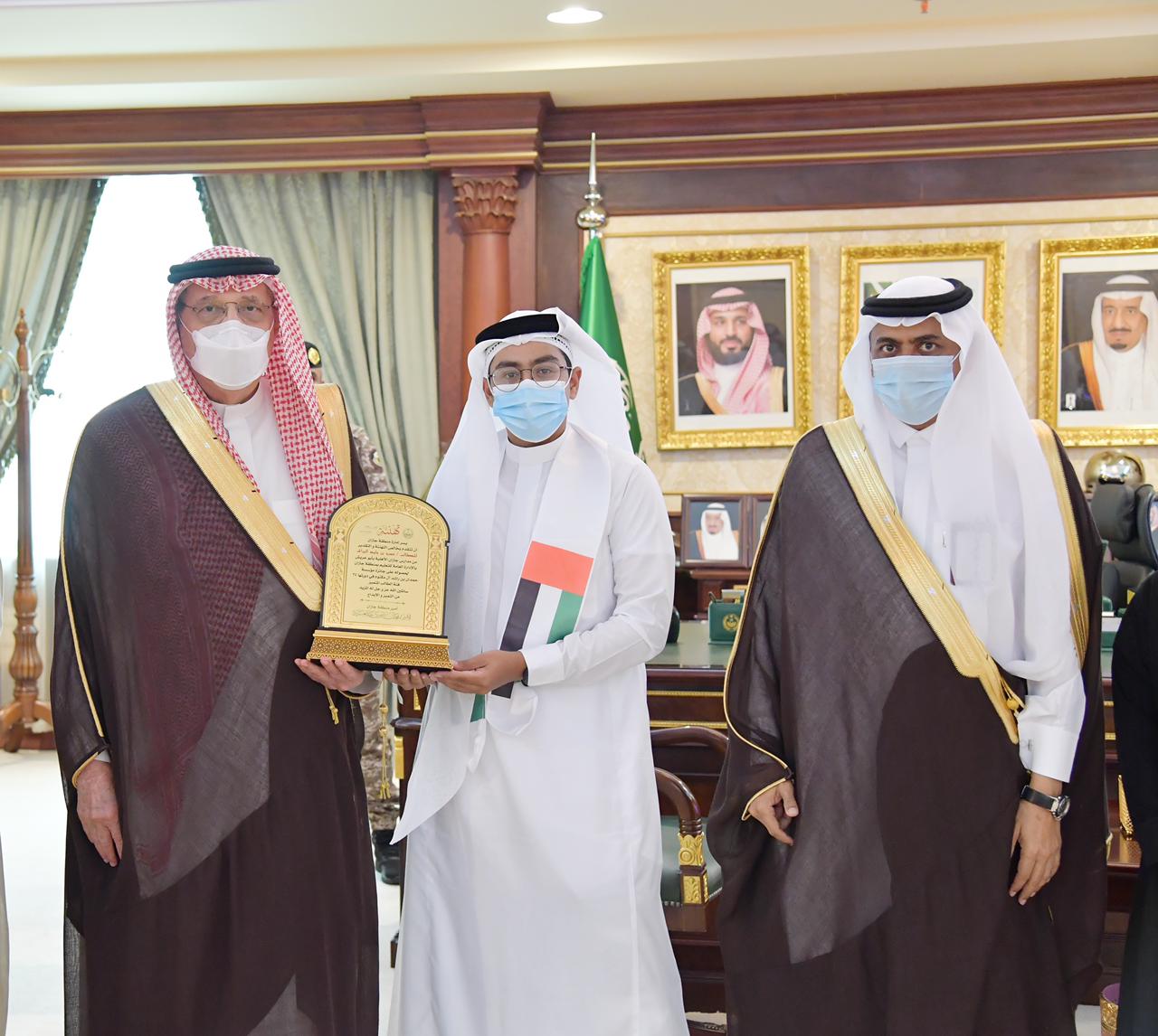 سمو أمير منطقة جازان يكرم الطالب البراق من تعليم جازان الفائز بجائزة حمدان بن راشد
