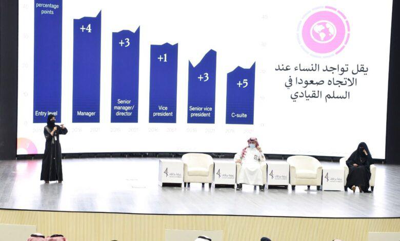ويجب الاستمرار في تنمية مواهبها واستثمار طاقاتها ، وسلطت الضوء على عدد من المبادرات التي تحتويها رؤية المملكة الساعية لتعزيز دور المرأة التنموي منها مبادرة المنصة الوطنية للقيادات النسائية السعودية ، وكذلك مبادرة برنامج قادة 2030 .