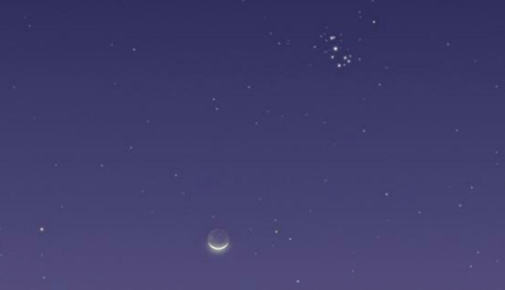 يُرصَد بسماء الوطن العربي بعد غروب شمس اليوم ومع بداية الليل , مرور هلال رمضان قرب عنقود نجوم الثريا الذي يُعرَف أيضا باسم الشقيقات السبع بسبب ألمع سبعة نجوم في هذا العنقود.