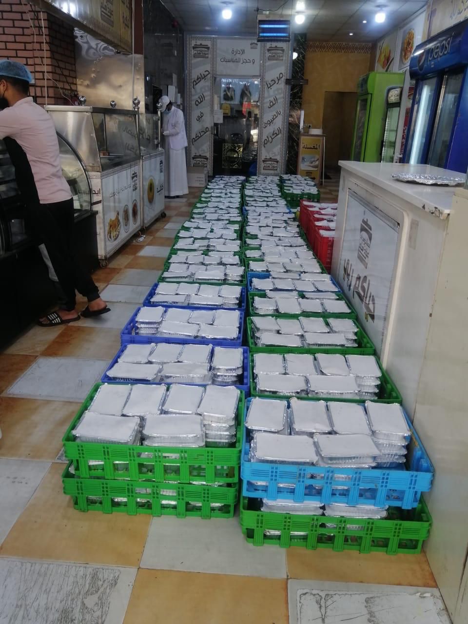 بتوزيع الوجبات للأسر المستفيدة والماره 200 وجبة يومية بمايقارب 6000وجبة خلال شهر رمضان المبارك.