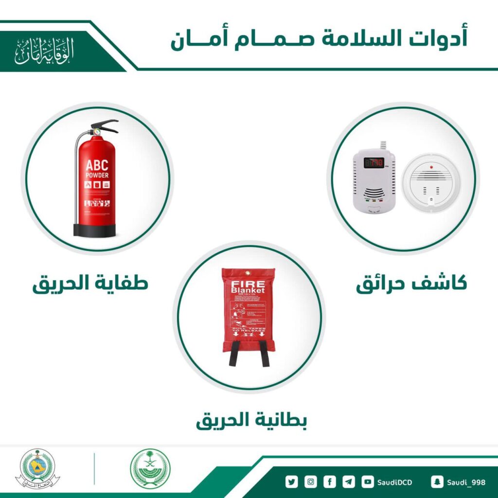 وأكدت المديرية ضرورة سلامة التمديدات الكهربائية والغاز واتباع إرشادات الدفاع المدني لتجنب هذه المخاطر، وتوفر مستلزمات السلامة وطفايات الحريق اليدوية وكواشف الدخان والتعرف على كيفية استخدامها في حالات الطوارئ.