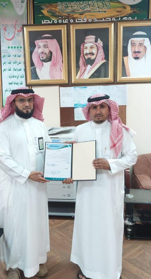 كرم مساعد الشؤون التعليمية برجال ألمع المكلف الأستاذ علي بن محمد ال مضواح المعلم المتميز أحمد بن محمد عبدالله ال مانع بشهادة شكر وتقدير.
