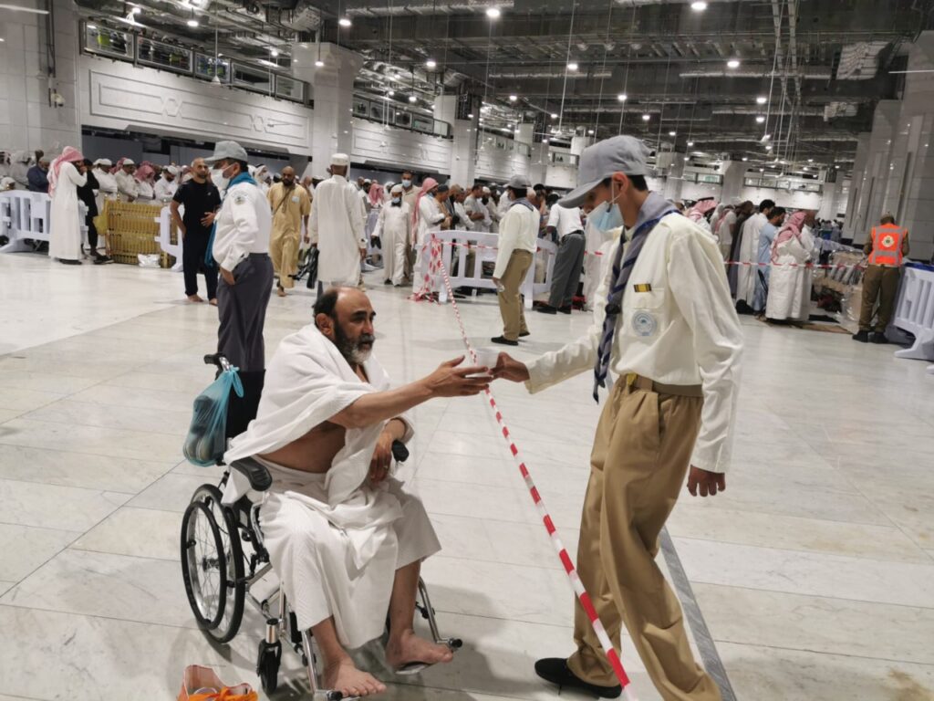 وأضاف قدير تتمثل مشاركة الكشافة في المسجد الحرام من توزيع ١٠٠٠٠وجبة إفطار للصائمين و٥٢٥٠٠ عبوة تمر, , مشيرا أن المستفيدين من خدمات الكشافة خلال العشر الأولى من رمضان أكثر من سبعين ألف مستفيد, وشارك في تقديم الخدمات التطوعية ٣٥٢ قائداً وكشافاً بواقع أربع ساعات عمل يومياً.