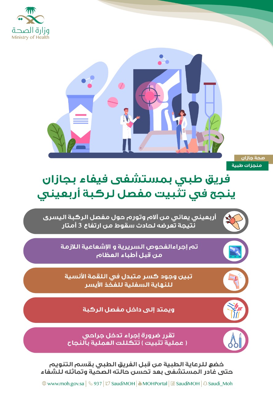 فريق طبي بمستشفى فيفاء بجازان ينجح في تثبيت مفصل لركبة اربعيني