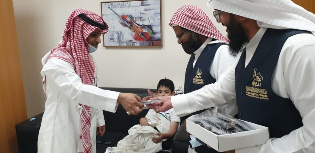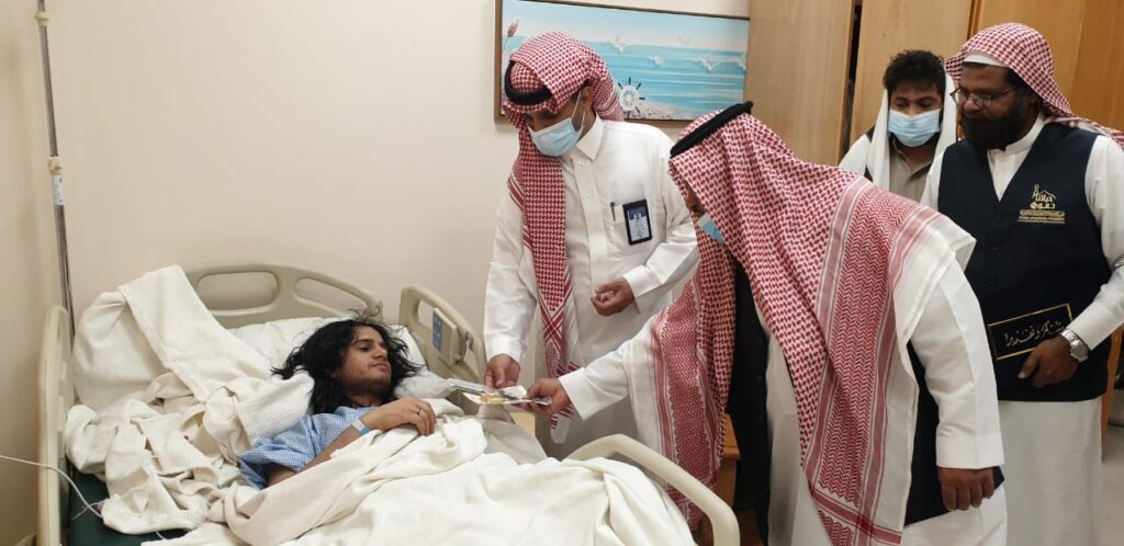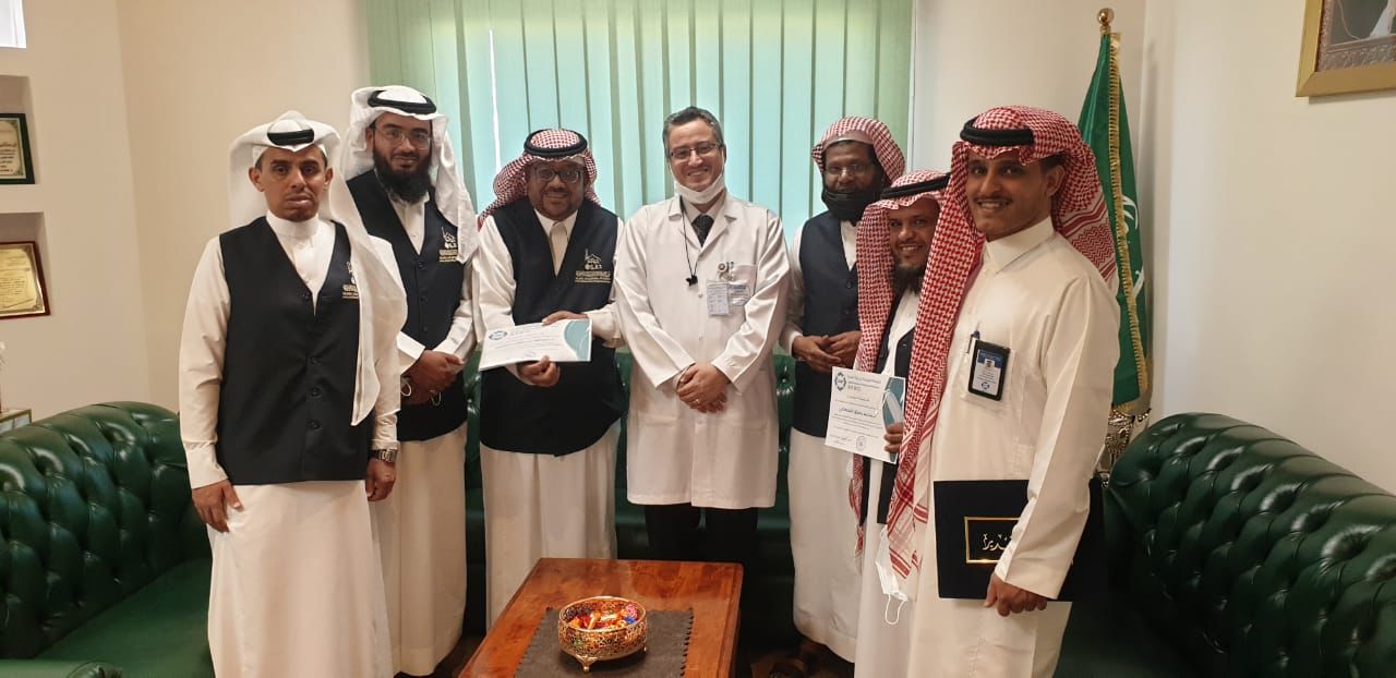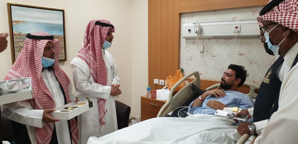 حيث بدأت الزيارة بمقابلتهم والتعريف بأهمية وأهداف الزيارة، ومن ثم قام الفريق بزيارة المرضى ورفع معنوياتهم والاطمئنان عليهم وتقديم هدايا عينية تحتوي على ساعة يد وبطاقة وحلوى شوكليت، وحُدد قسمي الباطنية رجال وجراحة رجال وأقسام أخرى استهدفت 25 مريضا، وكان للزيارة أثر بالغ في نفوس المرضى يعبر عن تعاون فئات الوطن الغالي في التآزر والاهتمام، وقدمت إدارة جمعية الدعوة والأرشاد وتوعية الجاليات شهادات شكر وتقدير لإدارة المستشفى وفي ختام الزيارة شكر مدير المستشفى فريق الزيارة وأثنى على المبادرة كما قدمت ادارة المستشفى شهادات شكر وتقدير من المستشفى للقائمين على هذه المبادرة التابع للجمعية وهي من المبادرات والشراكات المجتمعية المثمرة، كما قدمت أدارة المستشفى عرض خصم خاص لإدارة وأعضاء جمعية الدعوة والأرشاد أكراما لهم على ما يقدمونه من عمل إنساني اجتماعي