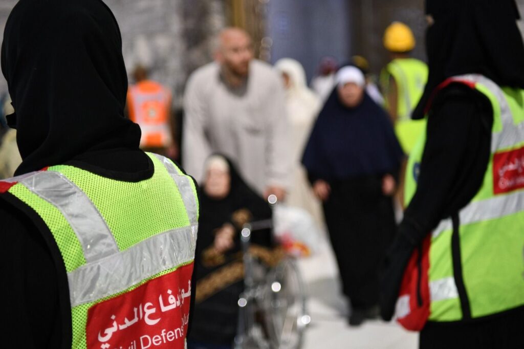 متطوعون يشاركون الدفاع المدني في خدمة ضيوف الرحمن