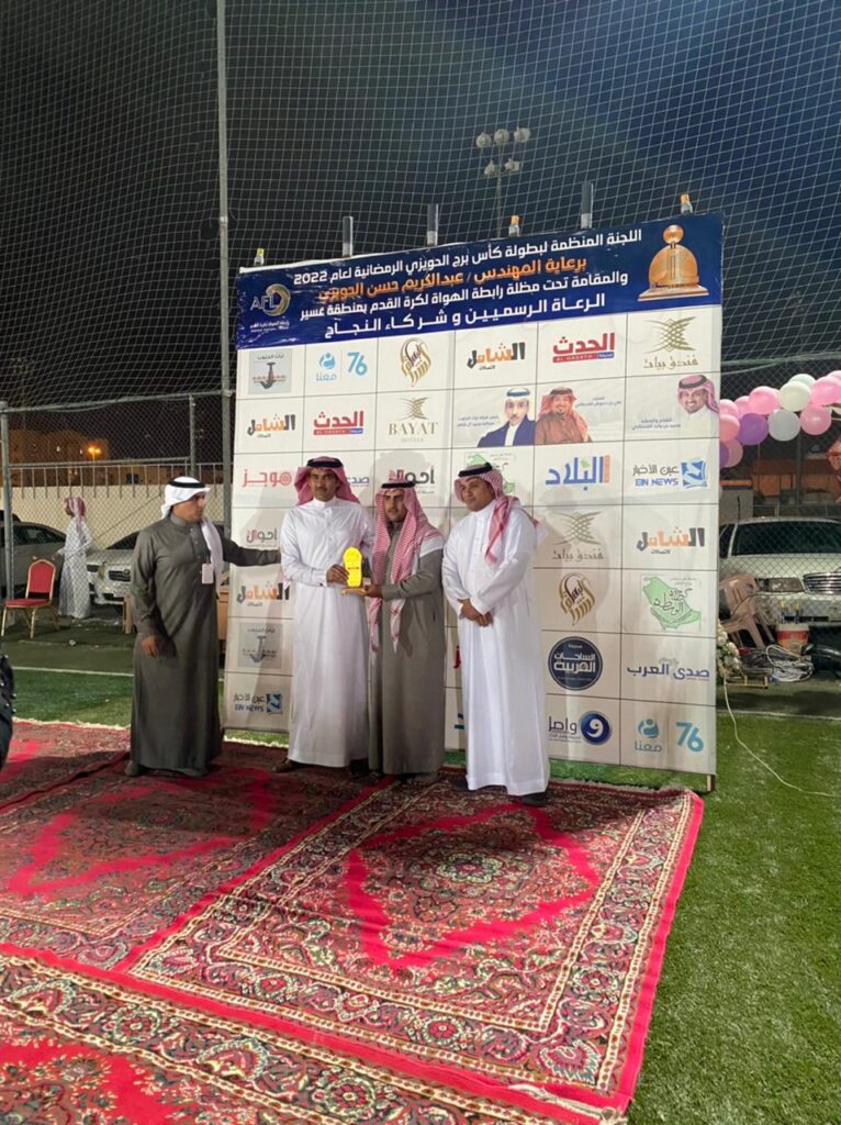 برعاية المهندس عبدالكريم حسن الحويزي وبحضور الأستاذ محمد الحويزي اختتمت اللجنة المنظمة لبطولة كأس برج الحويزي الأولى الرمضانية لعام 2022 والمقامة تحت مظلة رابطة الهواة لكرة القدم مساء الخميس الموافق ٢٠/٩/١٤٤٣ الموافق ٢١/٤/٢٠٢٢ تمام الساعه ١٠.٣٠ مساء