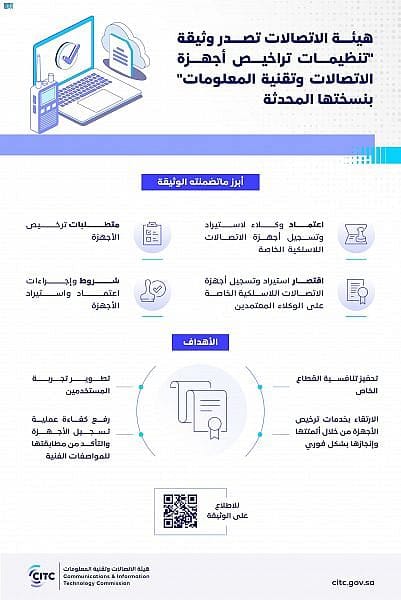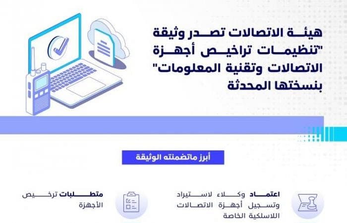 هيئة الاتصالات تصدر النسخة المحدثة لوثيقة “تنظيمات تراخيص أجهزة الاتصالات وتقنية المعلومات”