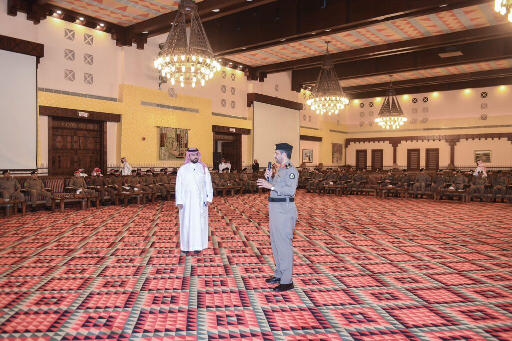 وقدّم مدير شرطة المنطقة اللواء فهد العصيمي، عرضًا مرئيًا تناول فيه الخطط الاستراتيجية لتطوير العمل الإداري والعسكري في القطاع، والخطط التطويرية لمباني الشرطة بالمنطقة من خلال تحسين الواجهات وتحسين وتطوير نقاط الضبط الأمني في المنطقة، كما استعرض أفراد الشرطة الأعمال التي يقومون بها في الإدارات التابعة للشرطة كلاً حسب اختصاصه و كيفية التميز في أداء المهام.