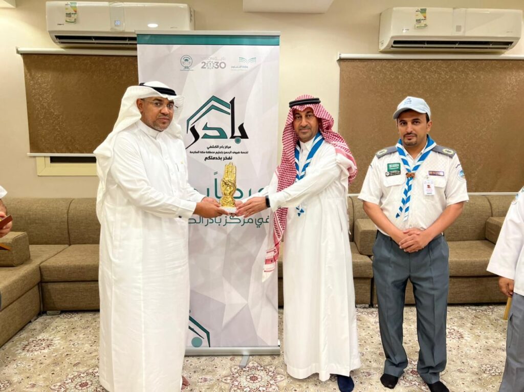 قد وصلت لمركز (بادر) حيث كان مدير النشاط الطلابي بتعليم مكة الأستاذ نبيل طيب ورئيس النشاط الكشفي الأستاذ زياد قدير بتعليم مكة ومدير المركز الأستاذ فايز الشهري، في استقبال الوفد، مرحبين بهم ومتمنين لهم طيب الإقامة.